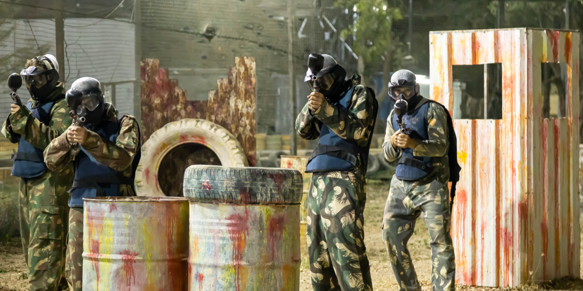 The game of paintball in Hyderabad is a competitive team shooting activity in which players eliminate opponents from play by hitting them with paintballs. These are spherical capsules loaded with dye and gelatin that rupture upon impact. Paintballs are typically fired from low-energy air guns known as paintball markers. In addition, these paintball markers are typically powered by carbon dioxide or compressed air. Players participating in the Shootout game in Hyderabad are obliged to employ barrel-blocking safety equipment, wear protective masks, and adhere to the game's rules for safe play. Paintball in Hyderabad is a great sport for families as well as corporates because it helps to build strong teams.